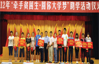 2012年9月5日,在東港區(qū)慈善總會2012年慈善助學金行動中再捐資12萬元,幫扶60名即將邁進大學校門的貧困學子圓了大學夢。