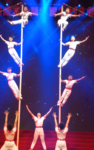 幾名特殊的嘉賓的到來,讓晚會增添了一份的感動,他們是興業(yè)希望小學(xué)的老師和同學(xué)代表以及我集團(tuán)資助的大學(xué)生代表,一句“謝謝興業(yè)集團(tuán)的叔叔阿姨們”,一個鞠躬,一曲《愛的世界》讓全場唏噓動容,他們用自己平實的語言表達(dá)了對興業(yè)的愛,用自己質(zhì)樸的歌聲表達(dá)對那些勇于承擔(dān)社會責(zé)任的企業(yè)和企業(yè)家們的感恩。十年里興業(yè)的發(fā)展可謂一步一個臺階節(jié)節(jié)高,雜技《節(jié)節(jié)高》驚險刺激,攀出了興業(yè)人的沖天豪氣,場下觀眾驚呼不已,拍手叫絕;著名歌手楊臣剛帶來耳熟能詳?shù)摹独鲜髳鄞竺住贰ⅰ逗眯值堋罚瑢F(xiàn)場帶入溫馨的大合唱。