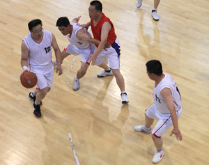 在比賽過程中各支代表隊都發(fā)揮出了極高的水平,為觀眾奉獻(xiàn)了一場場精彩的比賽。尤其在9月20日上午的交叉賽中,興業(yè)汽配代表隊與天泰鋼結(jié)構(gòu)代表隊勢均力敵,比賽中雙方比分交替上升,離結(jié)束還有不到20秒時,汽配代表隊61:58領(lǐng)先3分并持有球權(quán),此時汽配隊員的心理感覺穩(wěn)操勝券,一個不經(jīng)意的走步把球權(quán)送給對手,離結(jié)束不到2秒,鋼構(gòu)中鋒馬沖順勢強(qiáng)攻,一記精準(zhǔn)的3分遠(yuǎn)投,將比分追成61平,使比賽拖進(jìn)加時。在加時賽中,汽配中鋒崔冰連續(xù)中投得手,興業(yè)汽配代表隊最終以73:65的比分完勝鋼構(gòu),躋身本屆籃球比賽的冠、亞軍決賽。因為天氣原因,9月20日下午的半決賽、決賽和驥翼組籃球表演賽改在日照一中室內(nèi)籃球場舉行。半決賽、決賽異常激烈,特別是在興發(fā)和汽配之間進(jìn)行的決賽,展示了興業(yè)集團(tuán)籃球的實力和水平,興發(fā)隊員們一次次嫻熟的配合,一個個精彩的扣籃,不時獲得現(xiàn)場觀眾的陣陣喝彩和掌聲。集團(tuán)驥翼隊與興發(fā)驥翼隊的籃球表演賽同樣上演了群雄大戰(zhàn),集團(tuán)驥翼隊在王建國總經(jīng)理帶領(lǐng)下,抗拒了體力不足,堅持打滿全場,最終以44:44的比分和興發(fā)驥翼隊握手言和(因?qū)俦硌葙惒辉偌訒r),也宣告興業(yè)集團(tuán)第五屆職工運動會籃球比賽鳴金收兵。